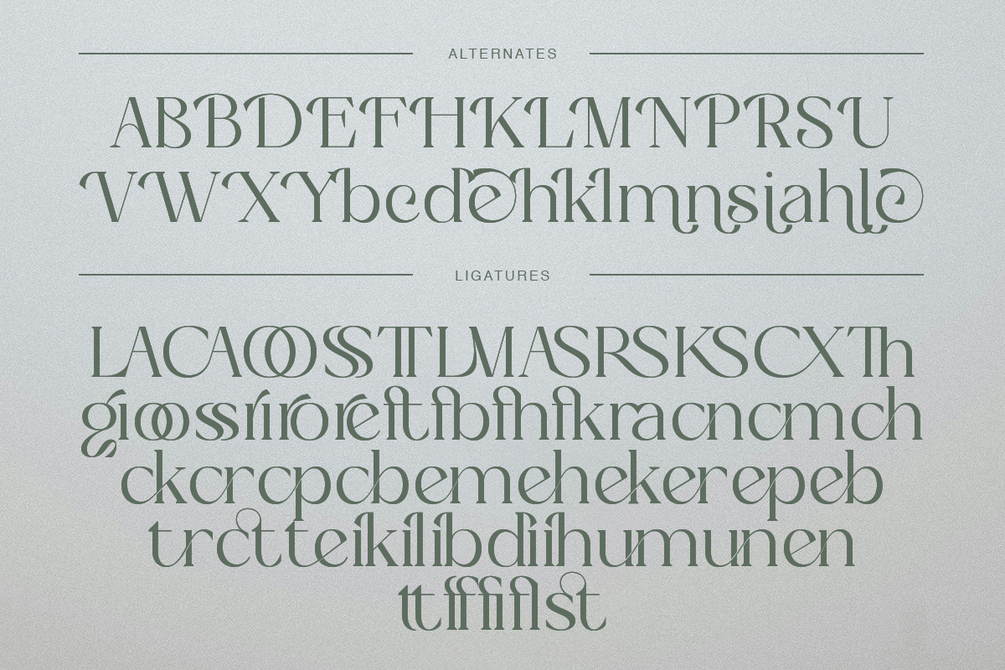 Introducing the Bagien Serif Font! This font isn't just about style—it's about making your designs luxury with elegance. With its sleek alternates and graceful ligatures, Bagien is perfect for all your graphic design needs. Whether you're crafting a logo, designing a poster, or creating a stunning website, this font delivers.